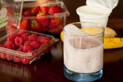 If you don't have time to eat a sit-down breakfast, MayoClinic.com has a high-protein recipe that can help boost your energy for the day. Blend 1 cup of vanilla yogurt, 1 cup of 2 percent milk, one medium banana (cut in chunks), 2 tbsp. of wheat germ and 2 tbsp. of protein powder until smooth. You can add ice and any combination of berries as well. Use low-fat yogurt and nonfat milk to reduce the number of calories in the smoothie.